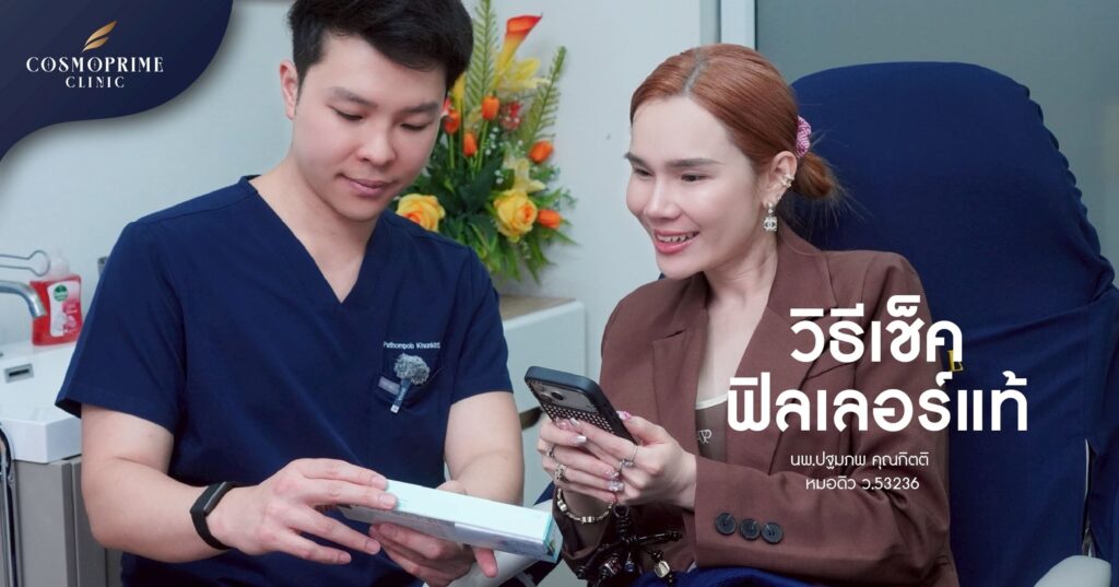 บทความนี้พวกเรา Cosmoprime Clinic จะพาไปดูวิธี เช็คฟิลเลอร์แท้ แบบเข้าใจง่าย ว่าควรสังเกตอะไรบ้าง ตั้งแต่ราคาที่ผิดปกติ ไปจนถึงรายละเอียดบนกล่อง สติ๊กเกอร์ QR เลขล็อต วันหมดอายุ และเอกสารภาษาไทย เพื่อช่วยให้คุณตัดสินใจทำโปรแกรมฉีดฟิลเลอร์ได้อย่างรอบคอบขึ้นครับ